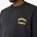 NAVY SWEAT TEE WITH YELLOW PRINT AND WHITE LABEL